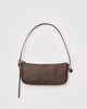 up close of brown recycled leather pochette bag