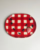 handmade tray with red and white gingham with 3d ant and strawberry print
