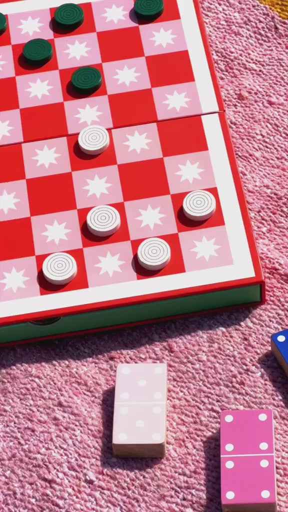 This 2-in-1 game board with wood pieces makes every night game night. It’s double-sided for checkers and backgammon. Bright, compact, and ready to play. There’s even a sneaky drawer for the pieces.