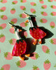 large dangle earrings with geese dressed as a strawberry