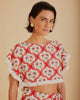 Embrace the warmth of summer with the Summer Beach LENZING™ ECOVERO™ Euroflax™ Blouse, a celebration of vibrant living. Its round neckline and airy silhouette are adorned with an eye-catching tropical pattern in lively reds, framed by dreamy palm trees. Luxurious to the touch and crafted with responsible materials, this blouse features playful ruffles, creating a carefree yet elegant look perfect for sun-kissed adventures. Feel the joy of a seaside escape with every wear. European Flax™certified GMO-free plant fiber produced without artificial irrigation that has guaranteed traceability and proven comfort, thermoregulation, moisture management, and breathability. 100% LENZING™ ECOVERO™the eco-responsible fibers generate up to 50% lower emissions and water impact compared to generic viscose.