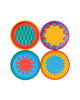packaged set of four dessert plate set with vibrant color blocking