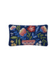navy blue lumbar pillow with colorful flowers in a vase print